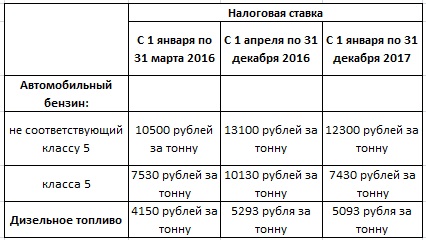 Акцизы на бензин с 1 января 2017